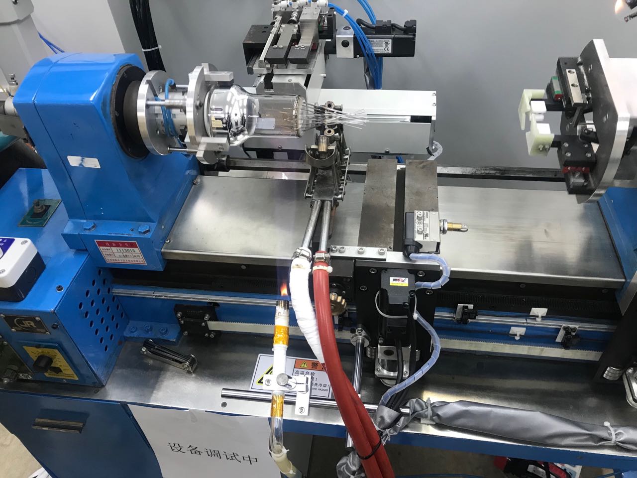 工作流程:半成品工件1置于三爪卡盘 -> 尾部装置就位并扶正附属工件 -> 预热两工件结合部位 -> 大火并侧翼机械手分别从两个方向抹平结合部位 -> 尾火去应力 ->产品加工完成